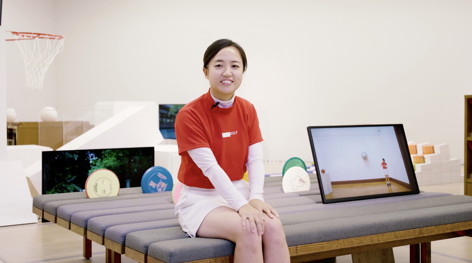 個展「You Dream About?」展⽰⾵景、 2024年 撮影:加藤奈々⼦ 佐俣和木(さまた・かずき)は、美術作家でありながら、ディスクゴルフという競技のプロ選手でもあります。